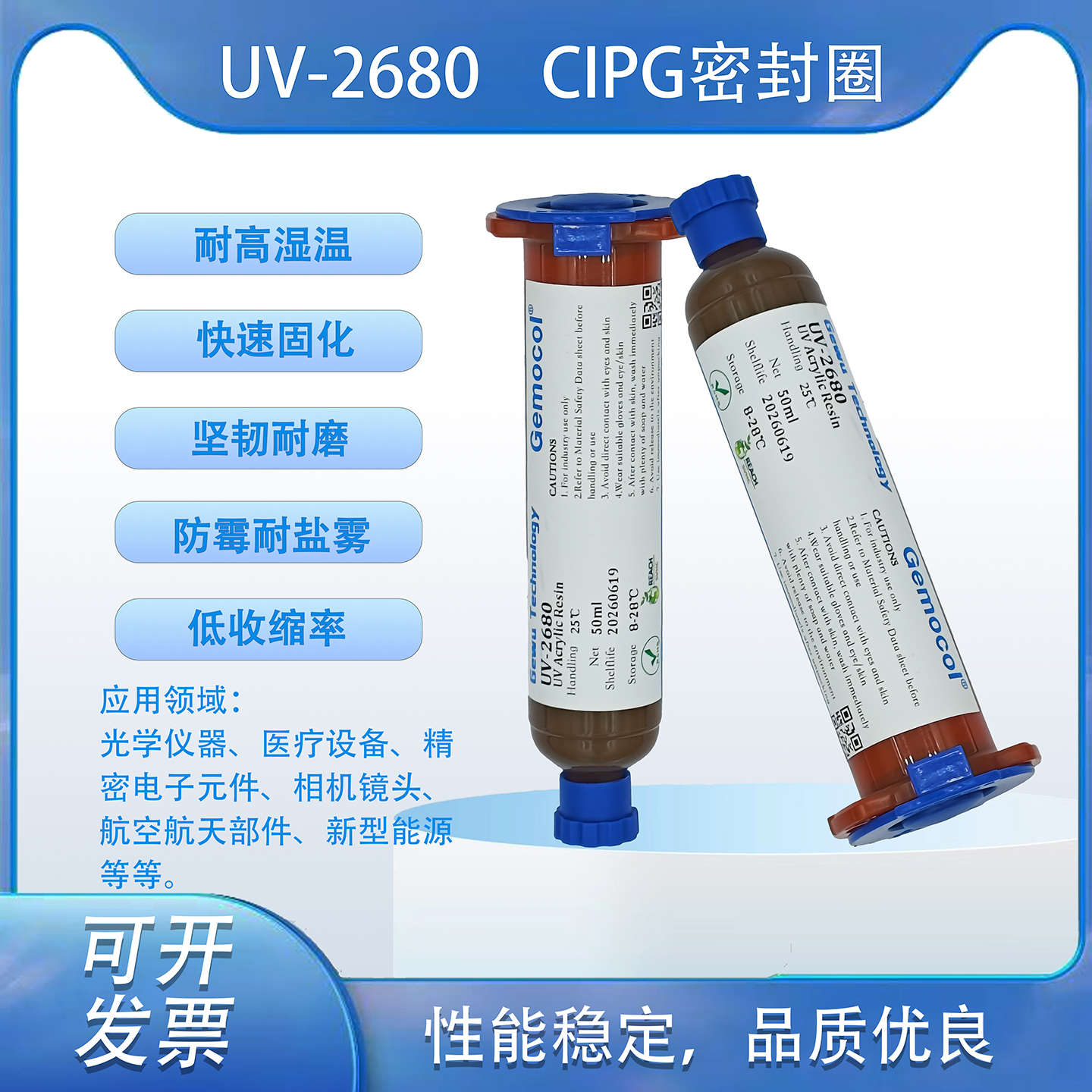 UV-2680 CIPG UV+濕氣有機硅密封圈